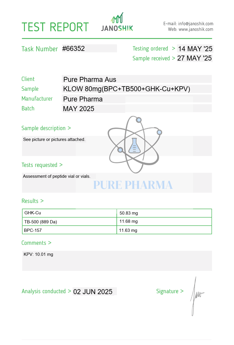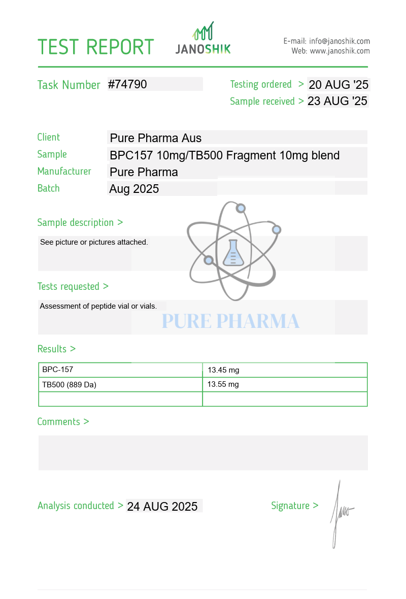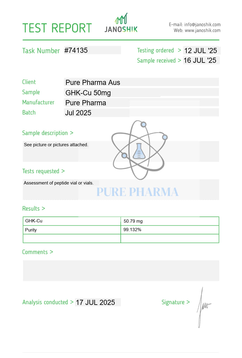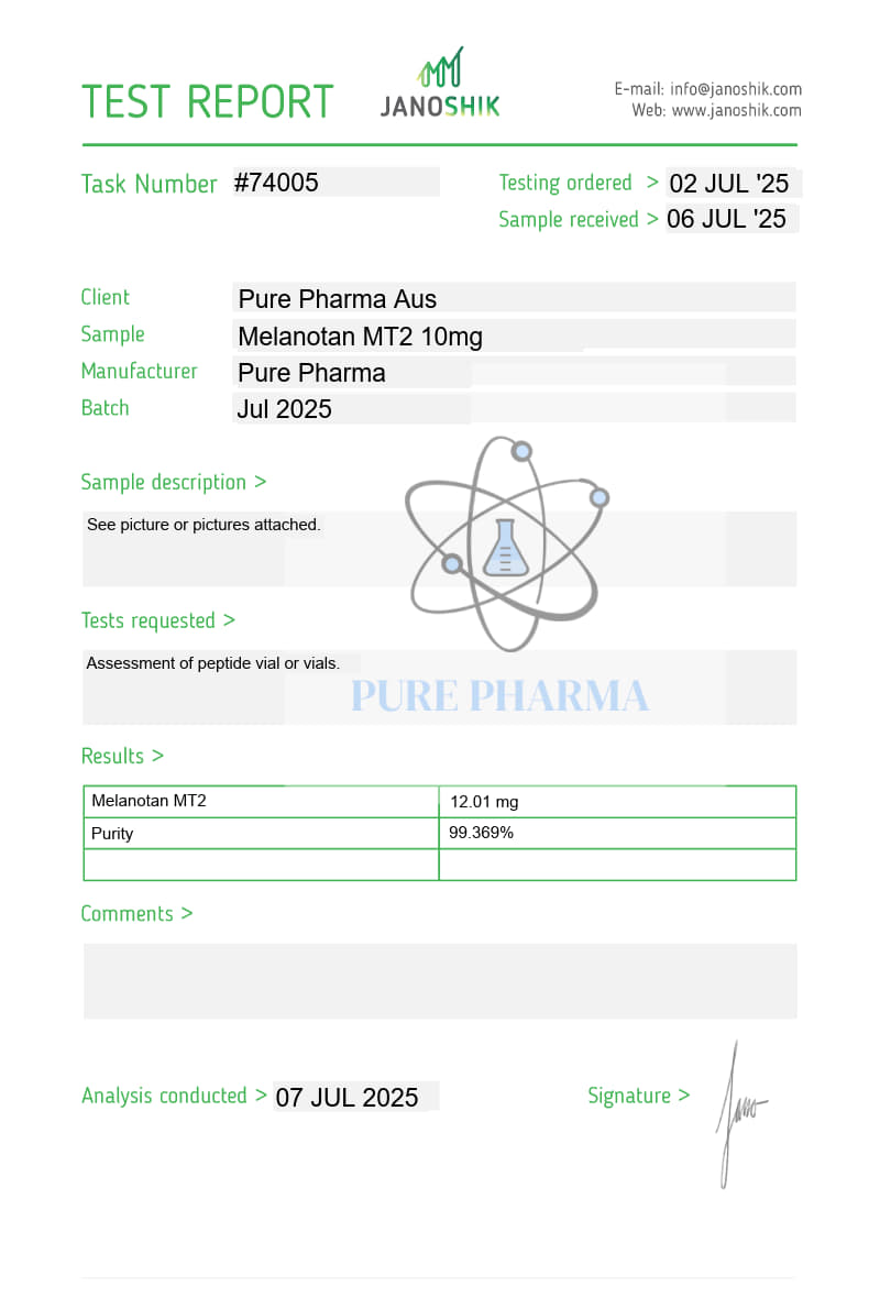 At PURE PHARMA, all products undergo rigorous testing, including HPLC analysis conducted by independent third-party laboratories. We provide detailed certificates of analysis and routinely update testing data to maintain the highest standards of quality, purity, and transparency.