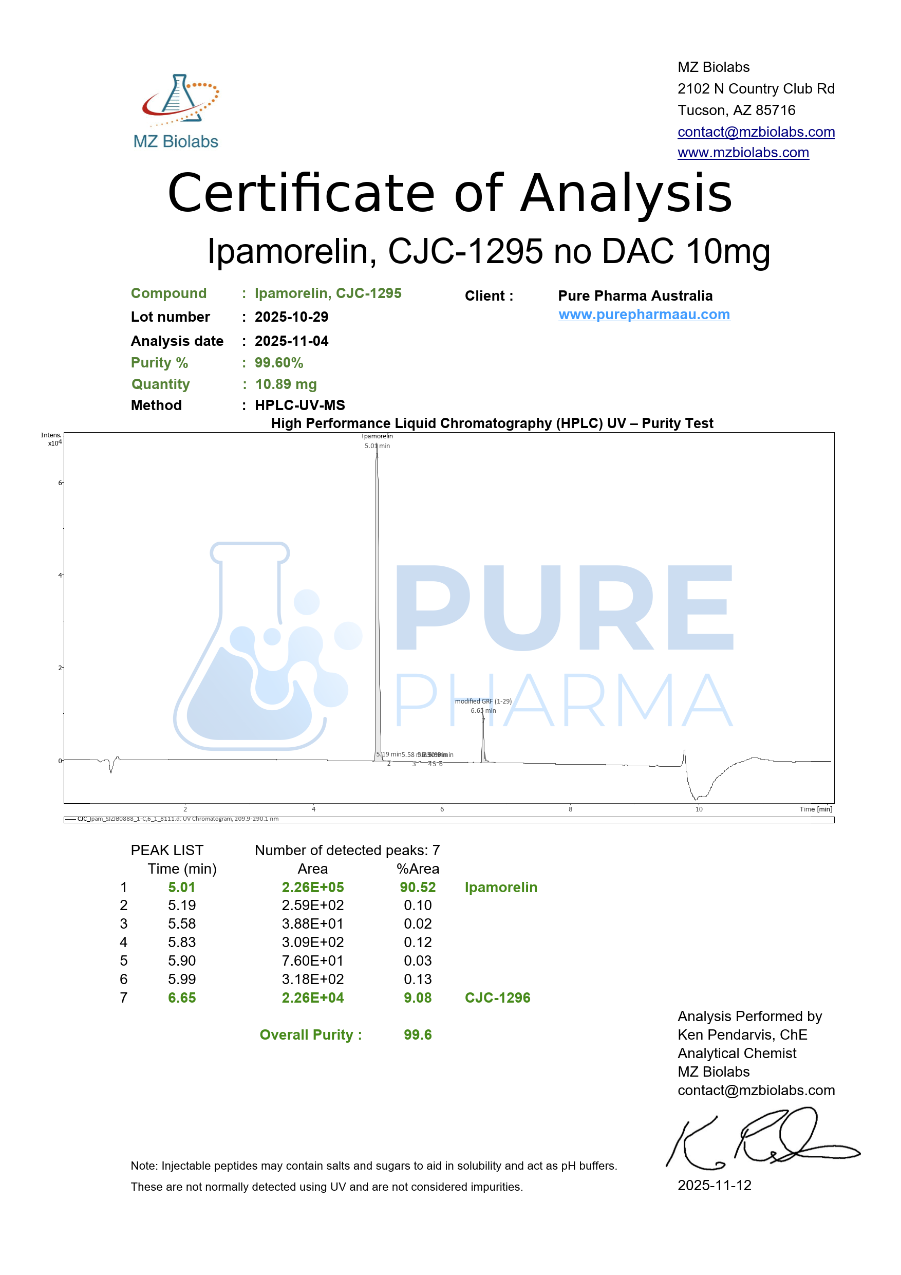 Molecular Weight: Approx. 3,366 g/mol (CJC-1295) + 711 g/mol (Ipamorelin)