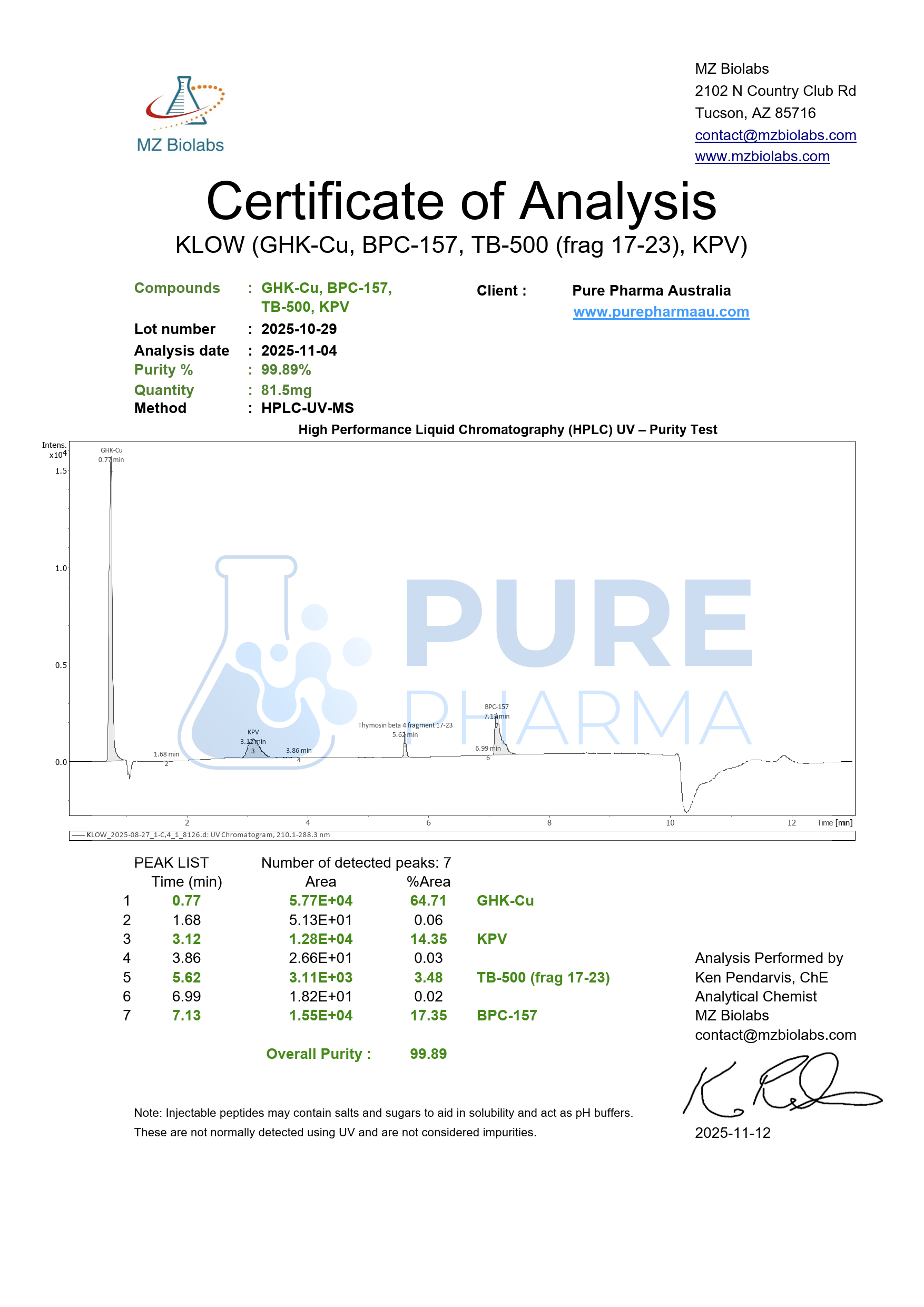 Synonyms: Multi-peptide blend (GHK-Cu 50mg, BPC-157(10mg), TB-500 (10mg), KPV(10mg)
